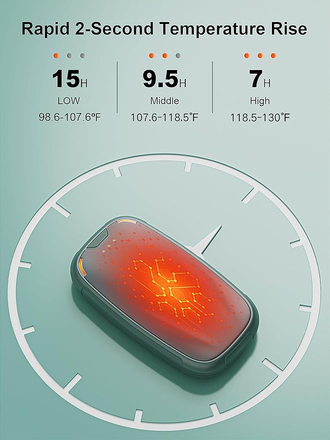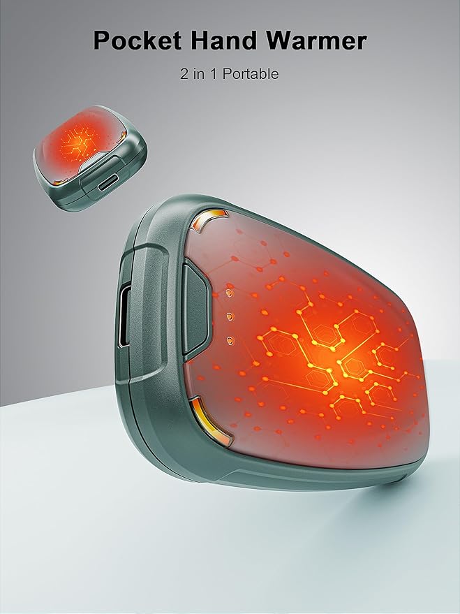 - 【2-in-1 Magnetic Design】This rechargeable hand warmers 2 pack is designed with magnetic attraction, it can be divided into two for independent heating, and portable hand warmer for easy storage. This pocket warmers has a unique shape and feels comfortable to use. Use it as a camping hand warmers and share it with your friends and family.