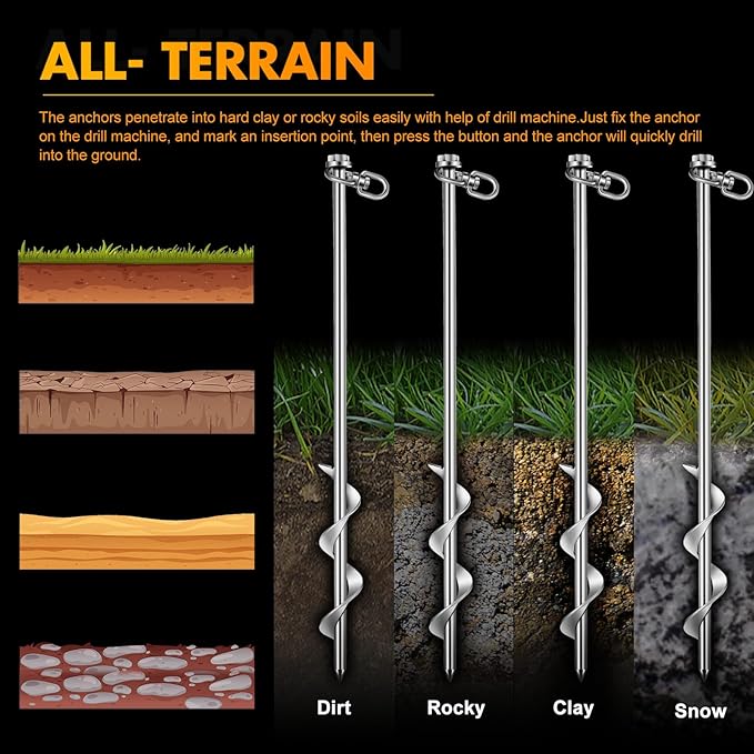 - Install Easily: the earth anchors are easy and convenient for you to install, with the help of the T handle hex wrench, the pointed ends can easily penetrate into the soil, greatly improving the efficiency, saving your time and energy