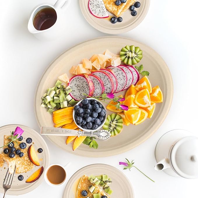 - 100% Natural Material: Our oval paper plates are made from bagasse and contain no BPA, wax, or gluten. The 12.5-inch oval shape is perfect for dinner or lunch and convenient for everyday meals