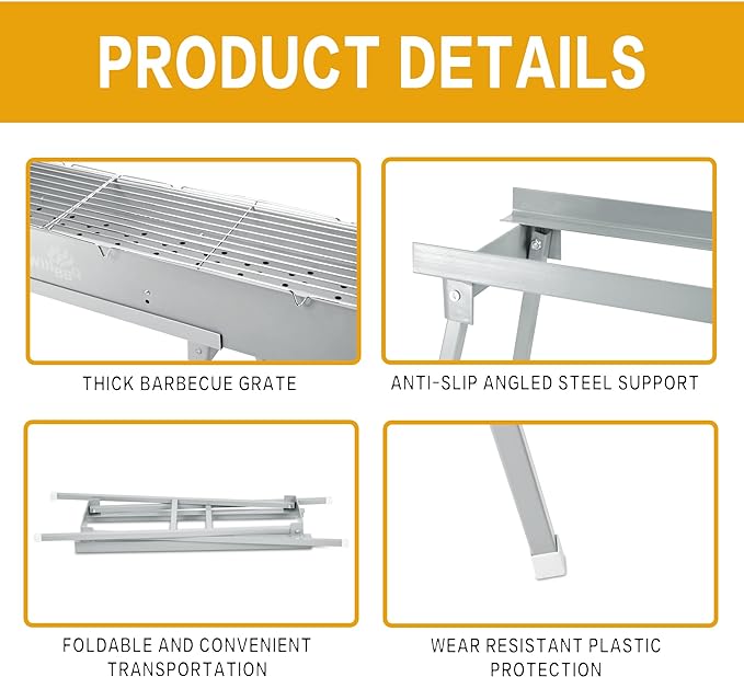 - Wide Application:The charcoal grills are perfect for any Skewers, Shish Kebab, Lamb Kebab, Shashlik, Japanese yakitori grill, Malaysian Satay, Thai Satay,Chinese Lamb Skewer and all other steaks, fish and vegetables, etc.Suitable for outdoor smoked cooking, picnics, tailgating, camping grill or on the patio,backyard, garden, traveling, park, beach.