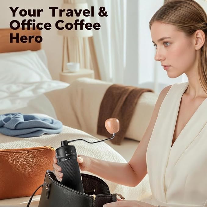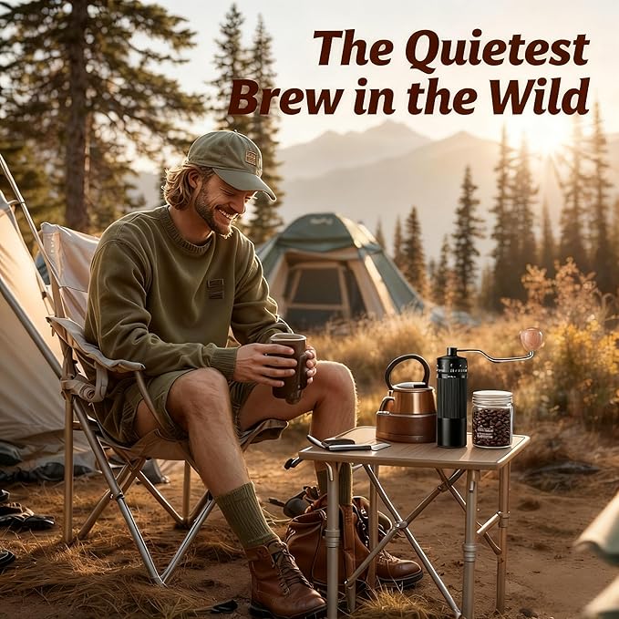 - Brew Anywhere, No Power Needed: Your perfect coffee companion for adventure and daily life. This compact, lightweight grinder is your ticket to fresh coffee while camping, traveling, or during power outages. Its hand-crank operation is quiet and efficient, making it ideal for offices, RVs, or a peaceful morning at home without waking the household.
