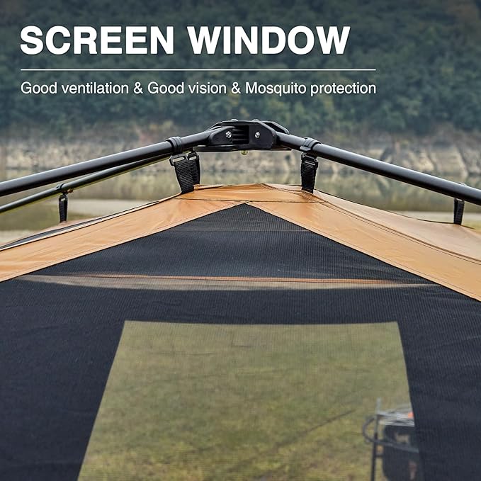 - GREAT VENTILATION: 3 large zippered mesh roll up windows and overhead net window for plenty of air flow and heat dissipation for the instant cabin tent; The skylight offers adequate vision for the camping tent while rainfly provides protection against the rain
