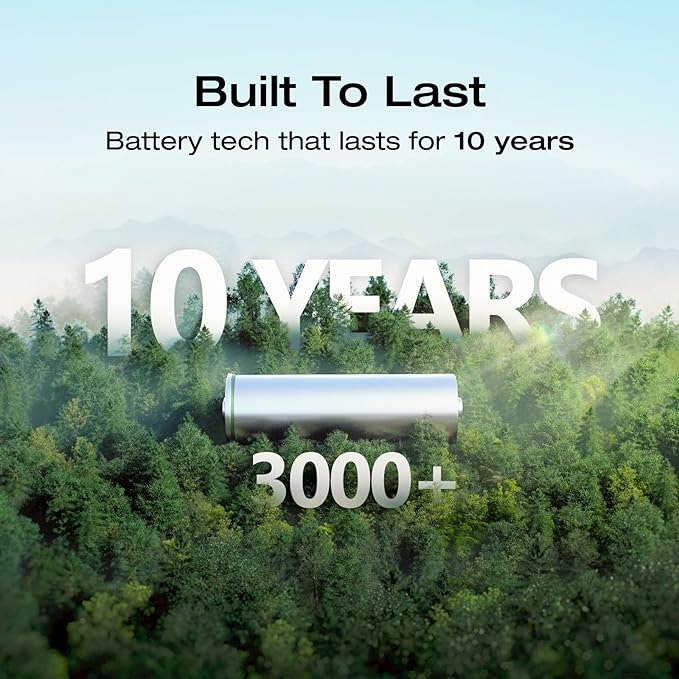 - [LFP Long-Life Battery] - Using LFP battery cells, use and recharge RIVER 2 more than 3000 times before hitting 80%. That's almost 10 years of regular use. RIVER 2 includes advanced BMS protection, monitoring voltage, current, and temperature to keep your LFP battery running for years.