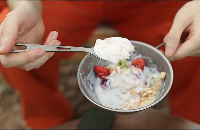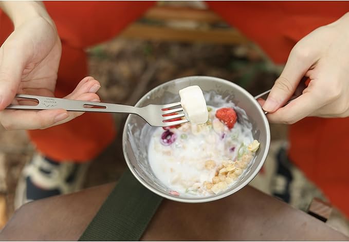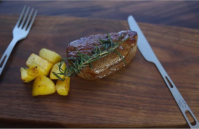 - Light Weight: The material titanium (Ti) is almost half weight of stainless steel. The cutlery is made of 99.8% titanium and weights less than 1.4oz(40g).