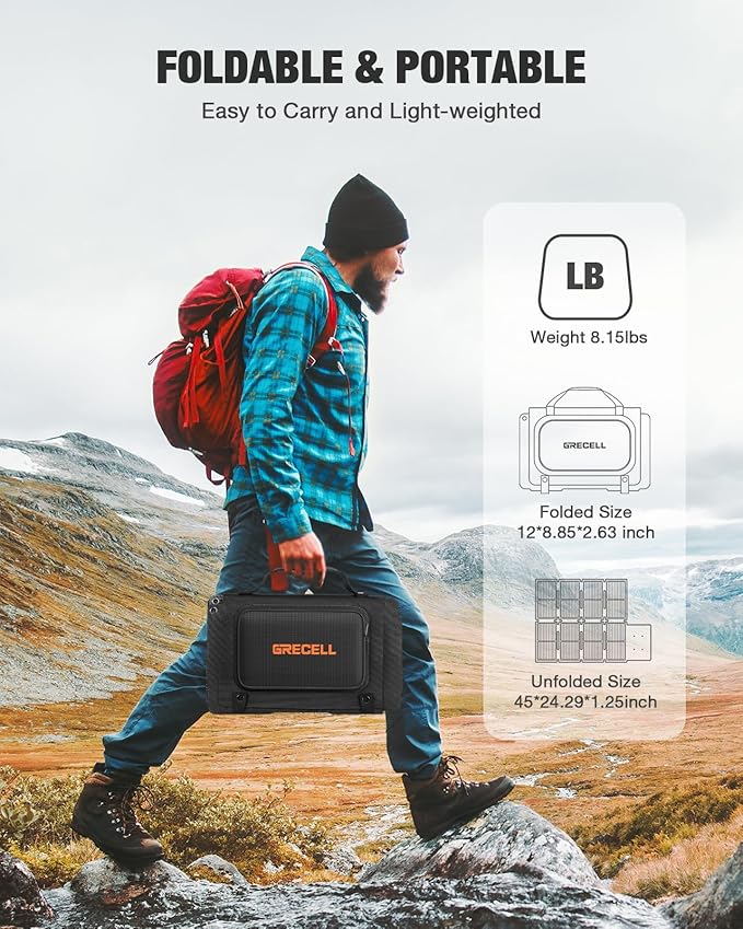 GRECELL 80W Foldable Solar Panel, Portable Solar Charger with USB-A and USB-C QC3.0 (18W) IP67 Waterproof Outdoor Cell Phone Solar Charger for Power Banks Tablets Small Power Station