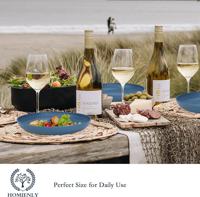 Homienly Dinner Plates Set, Alternative to Plastic Plates,Wheat Straw Plate Set of 8,Lightweight Microwave and Dishwasher Safe Plate,Unbreakable Salad Plates for Kitchen, Camping (Blue,10 inch)
