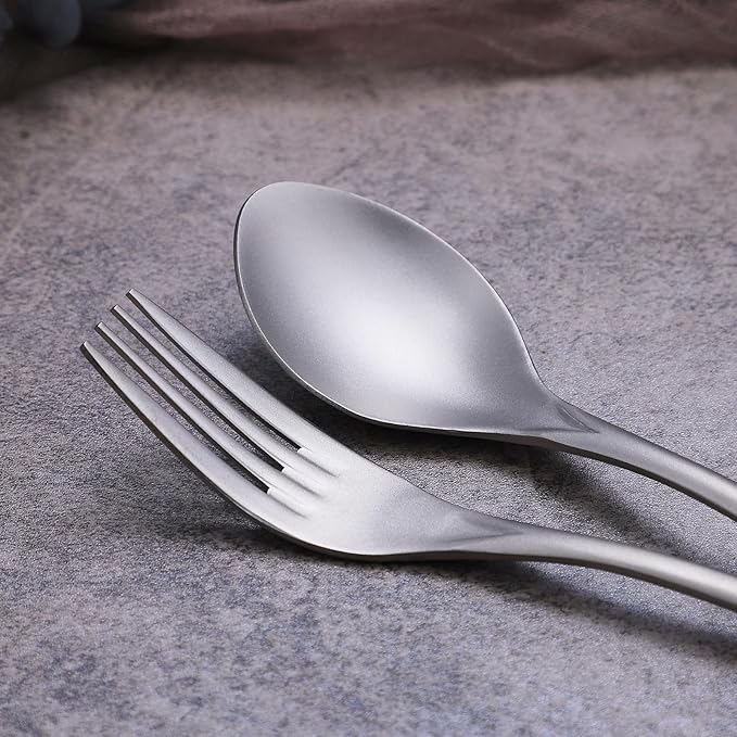 Titanium Cutlery Set, Lightweight Flatware, Modern Design, Dishwasher Safe, Service for 1 (2)