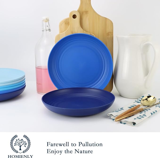 - COLORFUL REUSABLE PLATES: Our Wheat straw plates come in 4 blue series colors. Each color will give you a lot of fun while you use the colorful plastic plates, and your kids will love them too