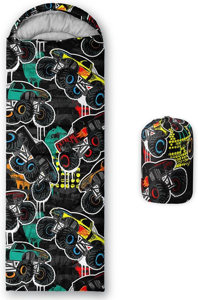 - 【Fits For 3 Seasons】: Size - 31 by 90 inches (W x D). Our Graffiti Style sleeping bag can be used in 3 seasons with a design temperature of 32℉-77℉(0℃-25℃). These Colourful Truck bags also have a weather resistant waterproof design to keep you warm and prevent you from any dampness.