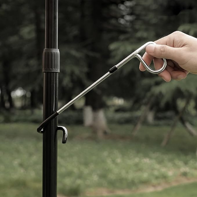 - Easy install and adjust hight: make the hook vertical to pole and rotate, let the feet stuck in the pole. And lift up to adjust the hight