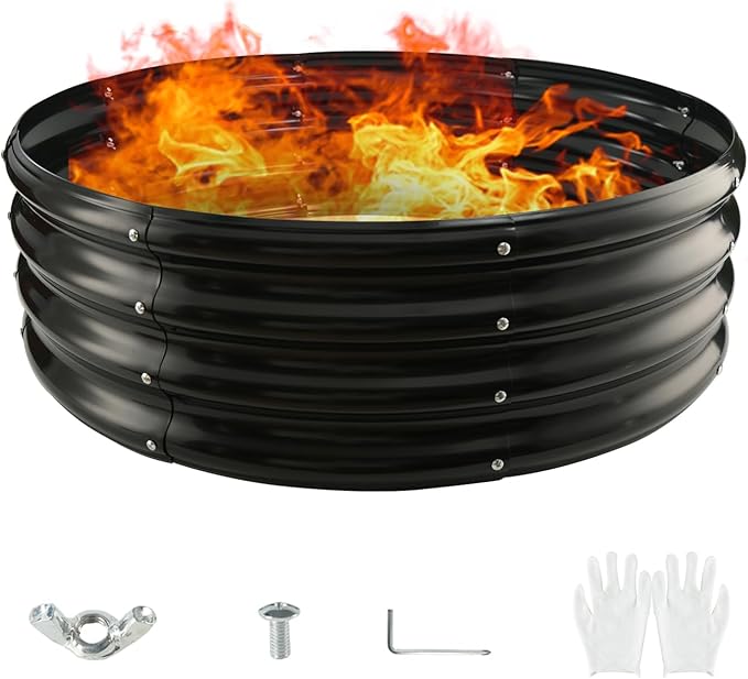 36-Inch Round Galvanized Steel Fire Ring/Fir Pit for Outdoor,Durable Round Galvanized Steel Raised Garden Bed for Planting- 3×3×1FT,0.8MM Thick (36 ins Diameter x 12 ins high, Black)