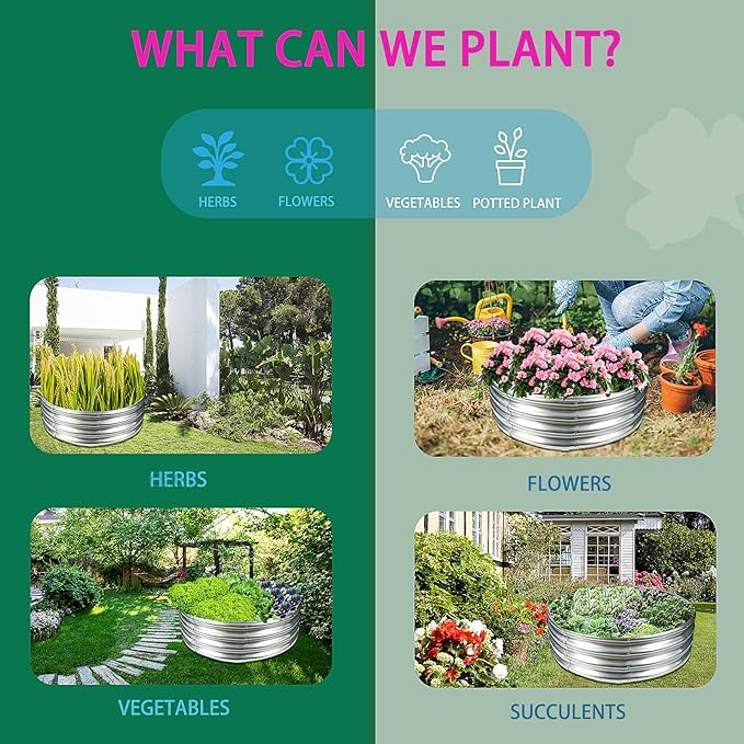- 【BENEFITS】: Whether you're growing vegetables, herbs, flowers, fruits, or other plants,ZBZBML Patio Raised Beds provide the perfect environment for your plants to flourish.In addition, it also can be used for galvanized steel fire ring,christmas tree fence