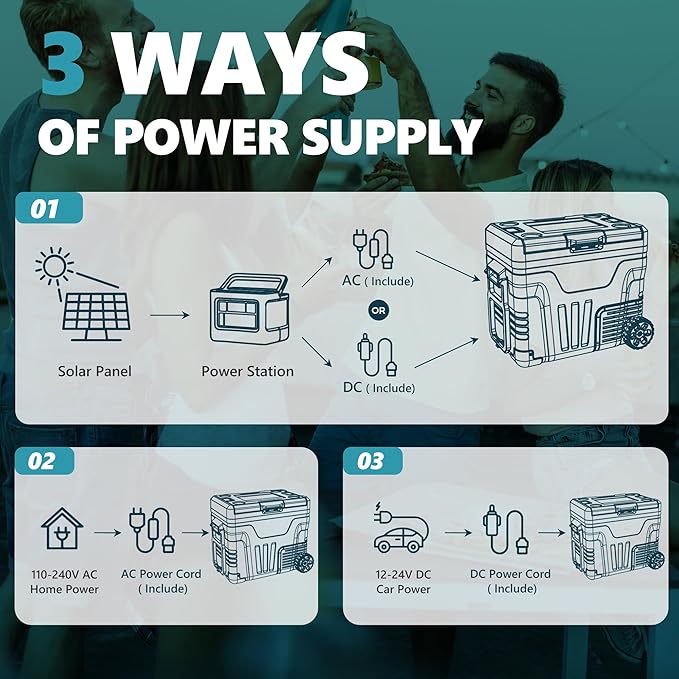 - Battery Protection & Multiple Power Supplies; This portable electric cooler offers 3-level battery protection, allowing you to adjust the input power between L/M/H modes to prevent overload or vehicle battery drain. The portable fridge can be powered by both DC and AC, making it suitable for various scenarios