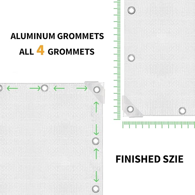 - 【Double-sided use· Reinforced edges】Our tarp can be used on both sides, and the waterproof effect is doubled. The edges of the tarp are reinforced to fit,metal grommets every 35 inches.