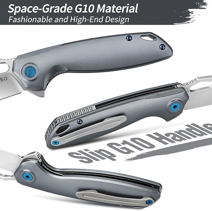 - 【Excellent Blade Performance】FINTISO pocket folding knife is made of Swedish 14C28N material, which has excellent stability and is not easy to chip, break or curl, hardness can up to 62HRC