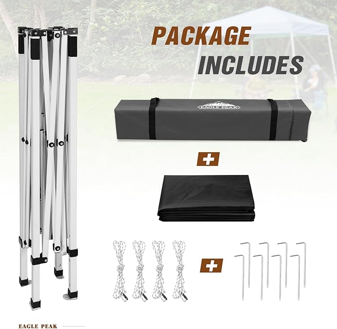 - EAGLE PEAK PROMISE: EAGLE PEAK offers a 1-year limited after sale protection from the original date of purchase. Unlike many other canopy manufacturers, EAGLE PEAK offers this for our frames, canopies and bags! If you have any other questions, please contact our professional service team