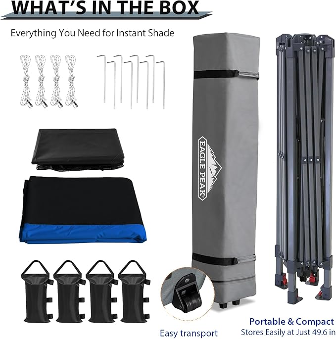 - EAGLE PEAK PROMISE: EAGLE PEAK offers a 1-year limited after sale protection from the original date of purchase. Unlike many other canopy manufacturers, EAGLE PEAK offers this for our frames, canopies and bags! If you have any other questions, please contact our professional service team