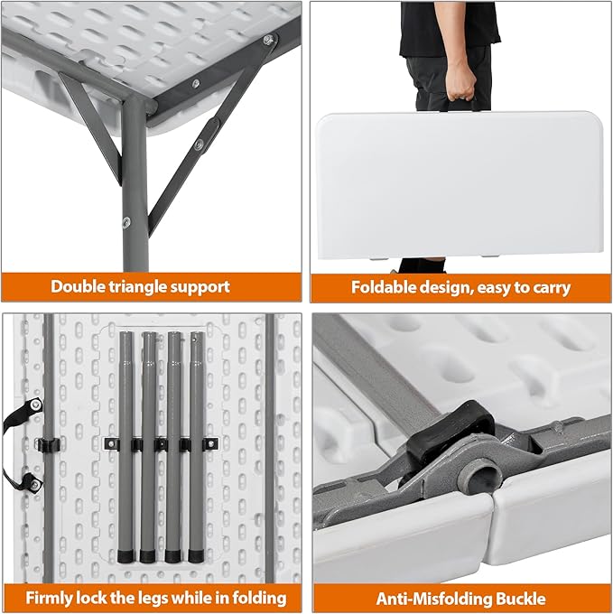 - Sturdy Construction -- It is constructed of premium HDPE top and solid steel legs .The surface is waterproof, scratch and impact resistant which also can withstand up to 253 lbs, and includes non-marring foot caps to protect your floors from scratches