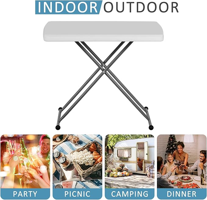 - Multipurpose Table -- It weights only 8.9 pounds lightweight makes it easy to move. Adjustable Height (19.3/24.8/29") is easily adjustable to meet various needs. It can be used as camping table, picnic table, office desk, sewing table,dining table etc