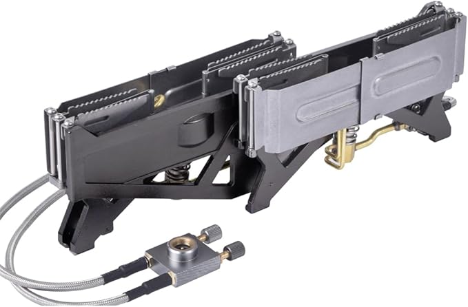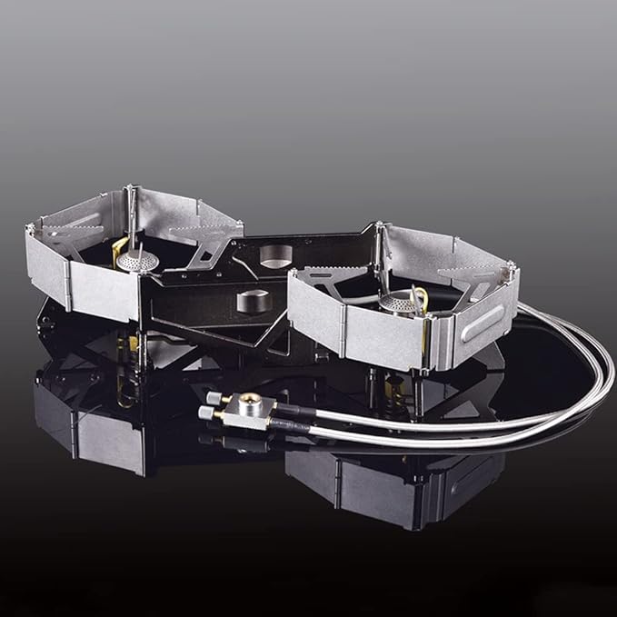 - The double star furnace has stable support and strong bearing capacity, and can be used for small pots with a diameter of more than 6cm. Dual adjustable fire switch, freely control the use of dual burners. Various gas sources (such as butane gas, propane gas, etc.) can be used through adapters.