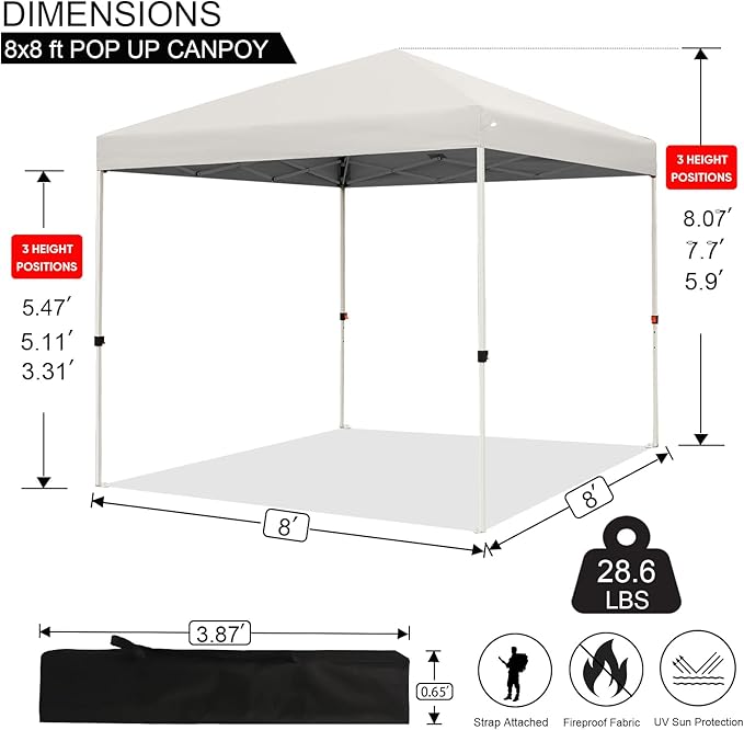 - ππππππππ πππ ππππππ: The Northroad 8x8 Pop-Up Canopy is straight leg design, provides 64 square feet of shade while easy adjusting sliders let you take advantage of 3 preset heights.