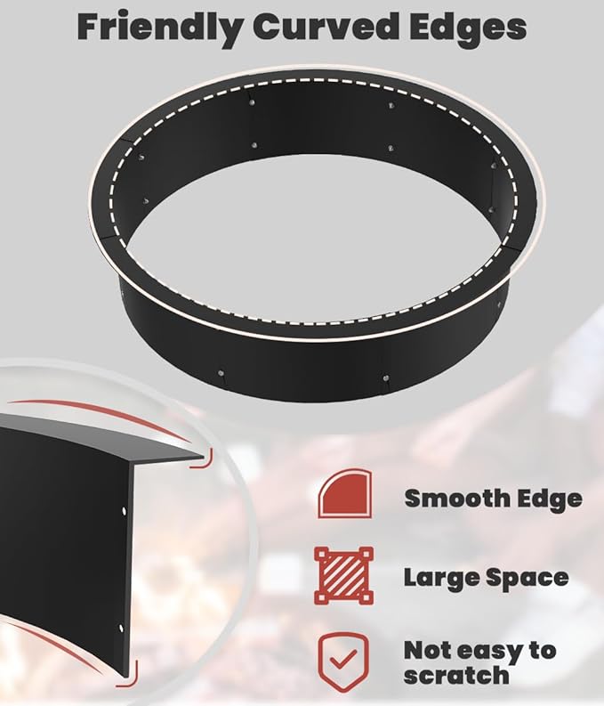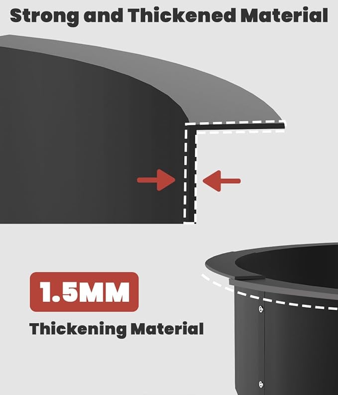 - Thickened & Rugged: The matte black high-temperature powder coating on the surface of the fire ring for outside fire pit, the iron sheet thickened to 1.5mm, increased the durability of the steel fire pit ring, the coating is not easy to peel, more durable, can be used repeatedly.