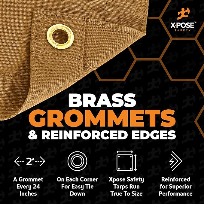 Xpose Safety Canvas Tarp - 10oz Tan Canvas Tarps Heavy Duty Water Resistant with Brass Grommets- Multipurpose Outdoor Tarpaulin for Camping, Canopy, Trailer, Equipment Cover 10' x 12'
