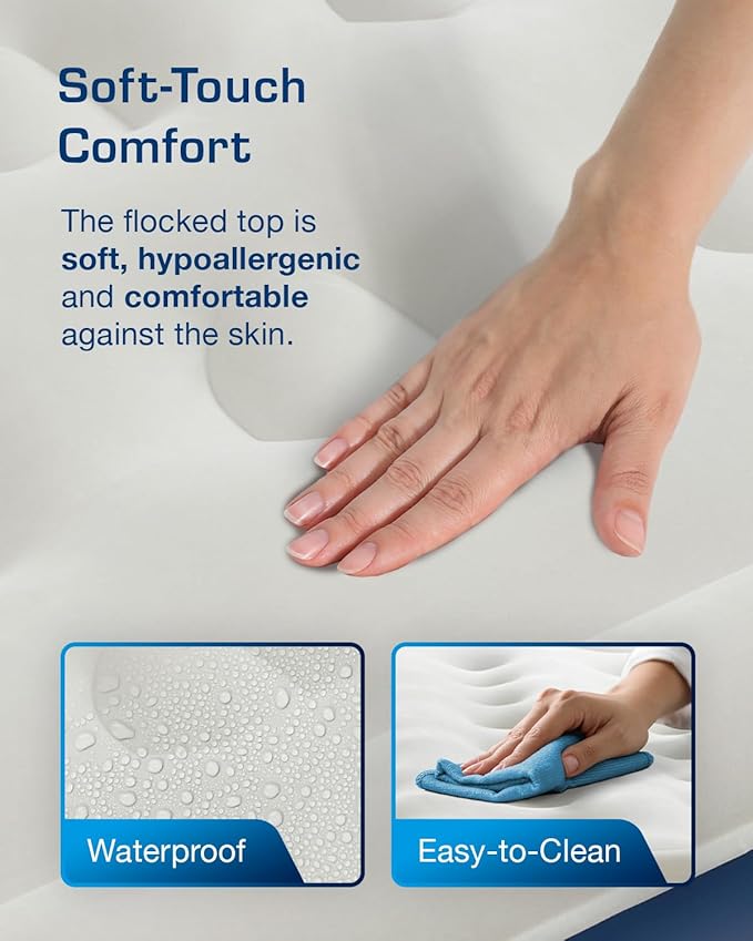 - DURABLE & WATERPROOF: Crafted with an extra-thick, hard-wearing, and waterproof flocked top layer, our double air bed provides a luxurious sleeping experience. The 5-gauge puncture-resistant material ensures durability and longevity, and the edge guard construction enhances air mattress stability and provides more sleeping space.