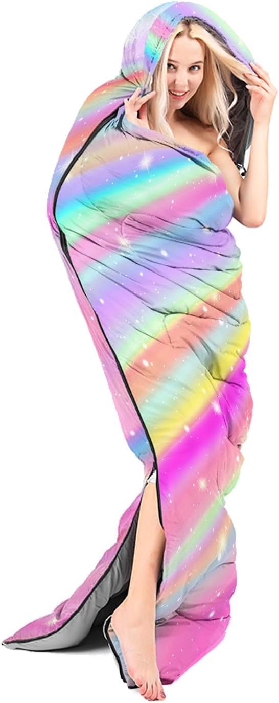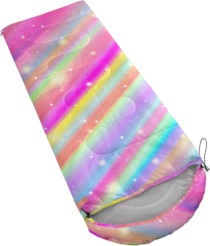 - Premium Material - The camping sleeping bag is made of premium 220T ripstop microfiber fabric,comfortable and breathable,lined with 220T cotton pongee. The waterproof outer protective shell is made of a unique hexagonal design and high-quality Material with double S-stitching and microfiber filling for optimal warmth and insulation to protect you from the elements. The bright colors are loved by boys and girls,great for kids and adults alike!