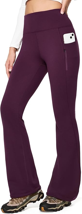 IUGA Fleece Lined Pants Women Water Resistant Hiking Pants Winter Flare Leggings with Pockets Bootcut Thermal