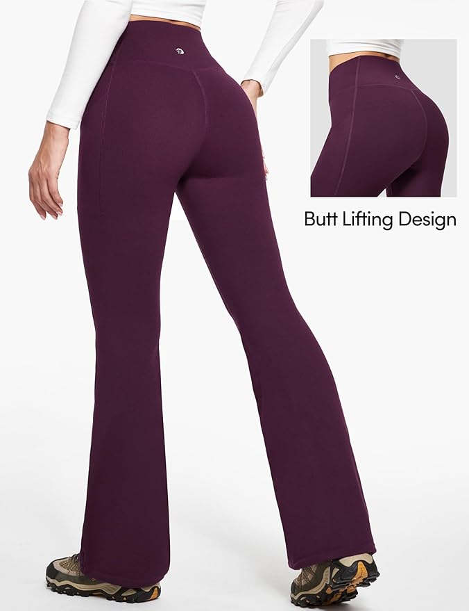 - 【3 Utility Pockets】Free your hands from the bleak wind in outdoor actives! These high waisted flare leggings provide you with two deep pockets for phone or wallet and a zipper pocket for keys or cards.