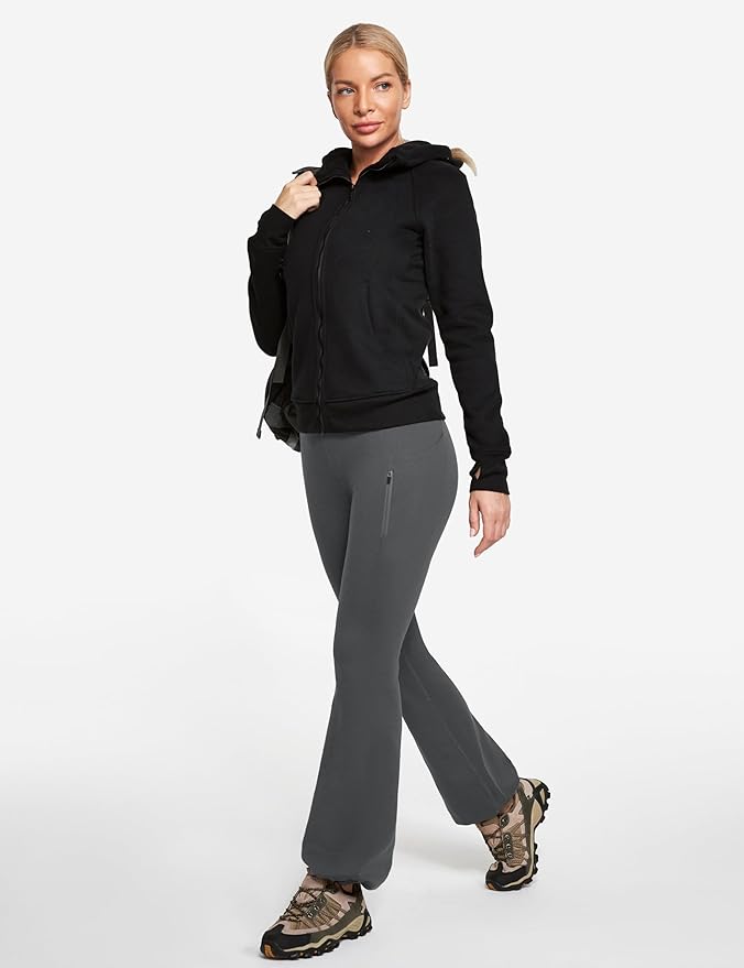 IUGA Fleece Lined Pants Women Water Resistant Hiking Pants Winter Flare Leggings with Pockets Bootcut Thermal