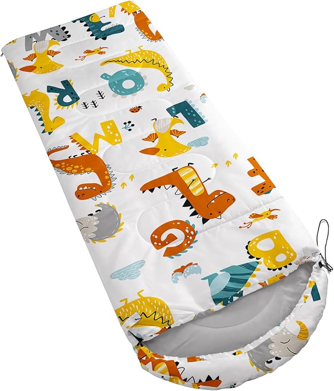 - 【Fits For 3 Seasons】: Size - 31 by 90 inches (W x D). Our Dinosaur sleeping bag can be used in 3 seasons with a design temperature of 32℉-77℉(0℃-25℃). These Graffiti style bags also have a weather resistant waterproof design to keep you warm and prevent you from any dampness.