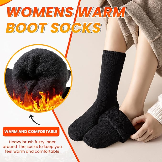 - 【Thermal Socks for Winter】Women winter warm socks are made of 82% Acrylic, 15% Polyester, 3% Spandex. The interior is lined with plush fleece that’ll hug your feet and envelop you in a cloud of fuzzy warmth.