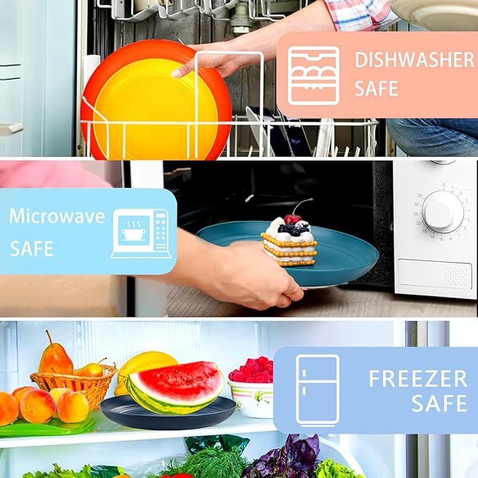 - Convenient Portability -Made of wheat straw and plastic material,our set is perfect for outdoor activities like picnics and camping. Enjoy the convenience of durable tableware wherever you go,without the fear of breakage.