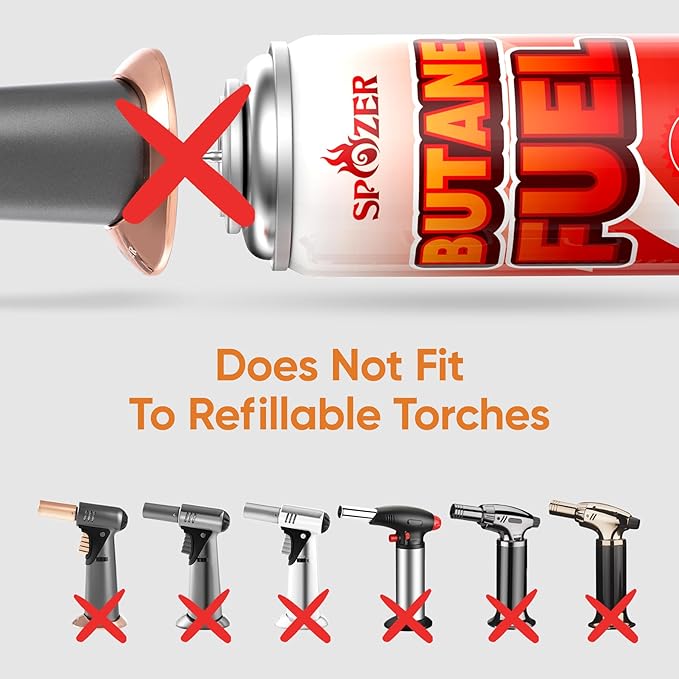 - COMPATIBILITY: SPOZER butane gas canisters are designed to be compatible with all butane stoves and kitchen torch lighters on the market and with gasone, Iwatani and chef-master stoves (Not compatible with inflatable lighters).