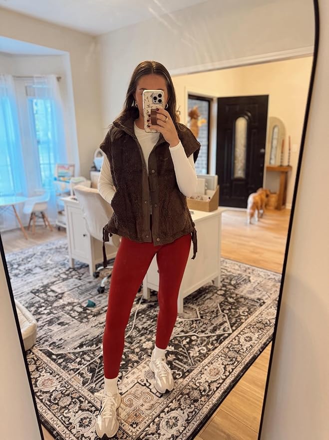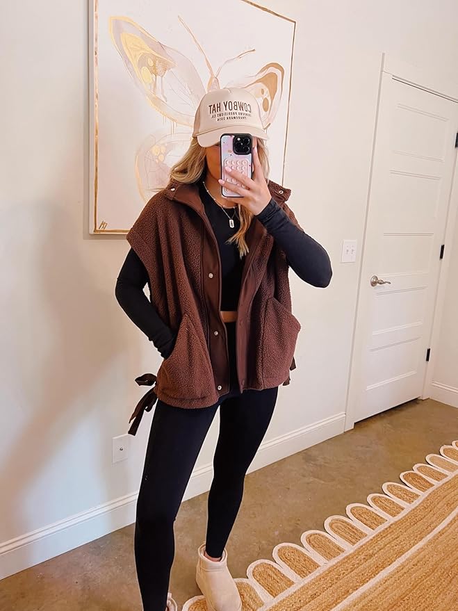 Athlisan Womens Fleece Vest Casual Sleeveless Button Down Sherpa Jacket Outerwear with Pockets