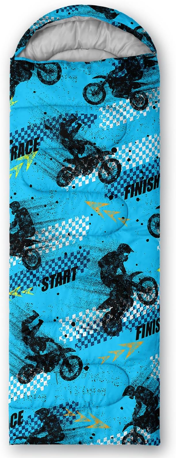 - 【Fits For 3 Seasons】: Size - 31 by 90 inches (W x D). Our Blue Motorcycle sleeping bag can be used in 3 seasons with a design temperature of 32℉-77℉(0℃-25℃). These Stunt Competition bags also have a weather resistant waterproof design to keep you warm and prevent you from any dampness.