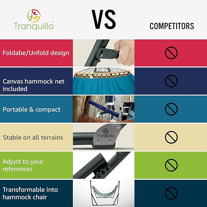- PATENTED INNOVATIVE DESIGN: Proudly patented for its smart, tool- free setup in just 30 seconds, the Tranquillo Hammock with stand offers effortless outdoor relaxation. Easily adjustable for perfect comfort, built with durable materials for long-lasting use