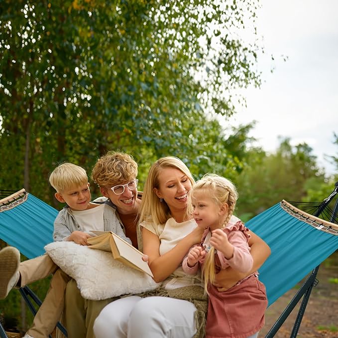 Tranquillo Hammock with Stand Heavy-Duty, Hammock Quick Fold Unfold, Steel Frame Hammock Canvas, Portable Hammock Stand Spreader Bar, 600 lbs Capacity Portable Relaxation Gear, Blue
