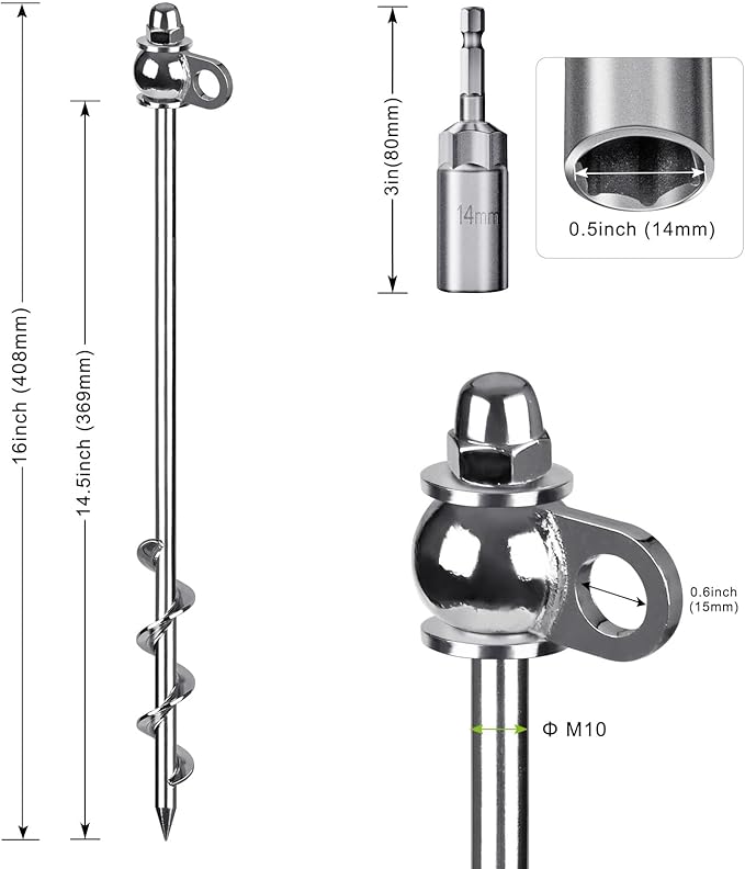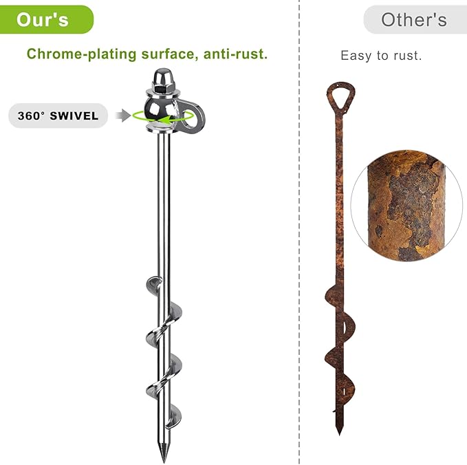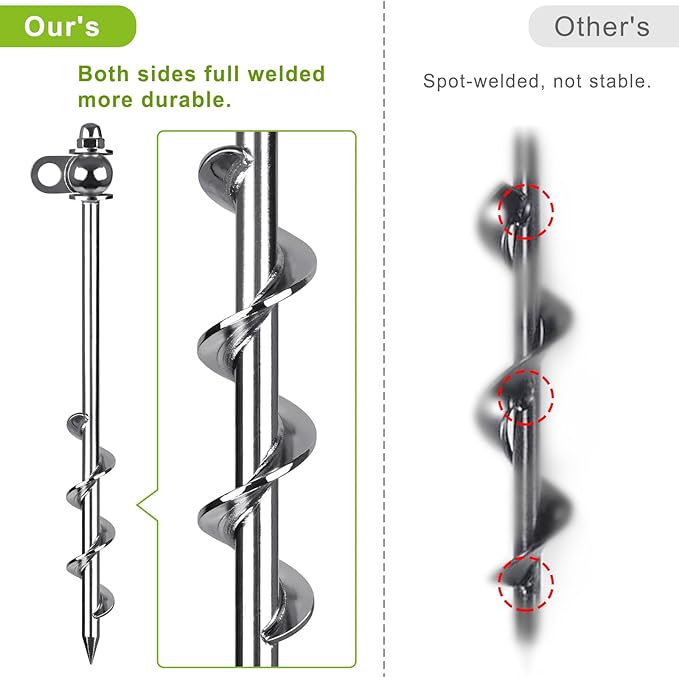 - Stable and reliable: Spiral anchor pieces easily pierce hard or rocky soil, providing a firm grip for secure tent installation