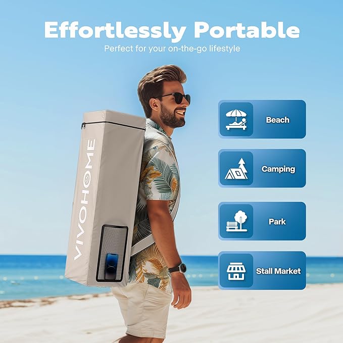- EASY TRANSPORT - Complete with a 300 x 600D Oxford cloth backpack, this tent is effortlessly portable for your on-the-go lifestyle; Designed with practicality in mind, the backpack features convenient storage pockets on both sides; Keep ground nails and ropes organized before installation or packing essentials like snacks, drinks, or books for your outdoor leisure; Whether camping, hiking, or beach-bound, this pop-up tent is your ideal companion for compact and portable outdoor adventures
