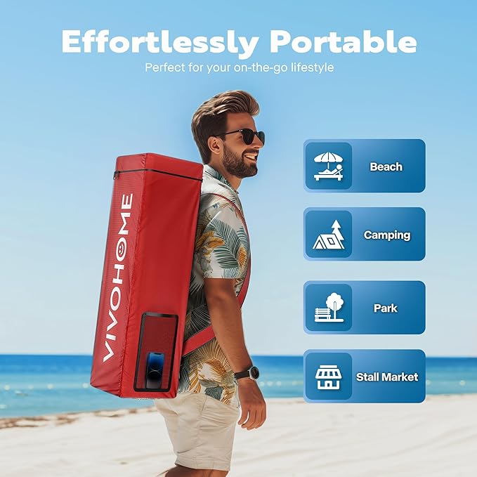 - EASY TRANSPORT - Complete with a 300 x 600D Oxford cloth backpack, this tent is effortlessly portable for your on-the-go lifestyle; Designed with practicality in mind, the backpack features convenient storage pockets on both sides; Keep ground nails and ropes organized before installation or packing essentials like snacks, drinks, or books for your outdoor leisure; Whether camping, hiking, or beach-bound, this pop-up tent is your ideal companion for compact and portable outdoor adventures
