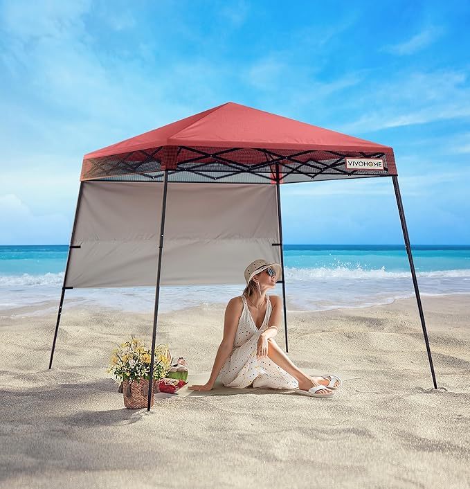 VIVOHOME 8x8ft Pop-Up Canopy Tent with Central Lock Design, Slant Legs, Backpack, and Side Wall, Portable Shelter for Camping, Party, Yard, and Beach Events, Red