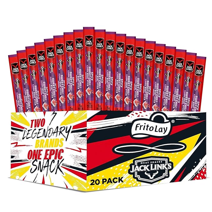 - Includes 20 (0.92oz) Jack Link's Meat Sticks, Doritos Spicy Sweet Chili flavor