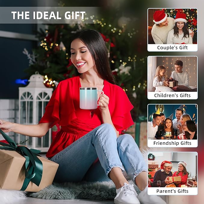 - 【MULTIPURPOSE】The 14 oz stainless steel coffee mug is perfect for daily use, suitable for office, home, garden, also perfect for outdoor travel coffee mugs thanks to the high quality painting process and insulation technology, take it to the beach, camping, outdoor trips, and enjoy the good time on the road. Suitable for all kinds of festivals, it can be a perfect gift for birthdays, Mother's Day, Father's Day, Christmas, as a surprise for your important people and harvest their happy smiles.