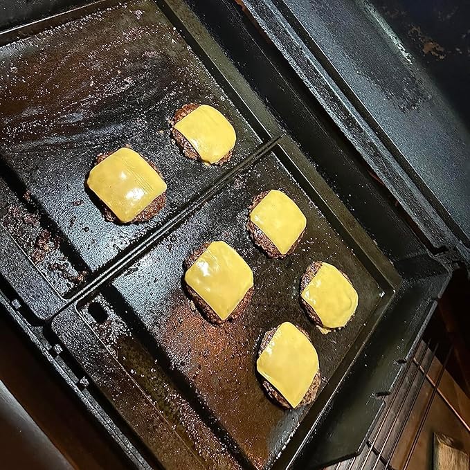 - 【Sturdy Material】Made of enameled cast iron provides superb warmth and distribution while preventing sticking, thus creating an easy to clean environment.The sloping cooking surface drains grease through the drainage holes to create a healthy grilling atmosphere.You can use it on all cooking surfaces, grills and campfires. Sear, fry, bake and stir fry as you like and enjoy the barbecue.Package including 1 pack cast iron griddle.Dimension:19.4”L x 12.5"W.