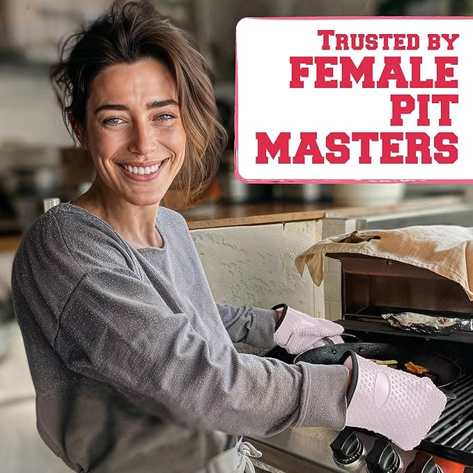 KITCHEN PERFECTION Silicone Smoker Oven Gloves for Women -Extreme Heat Resistant BBQ Gloves -Handle Hot Food Right on Your Smoker Grill Fryer|Waterproof Oven Mitts Grill |Superior Set+3 Bonuses