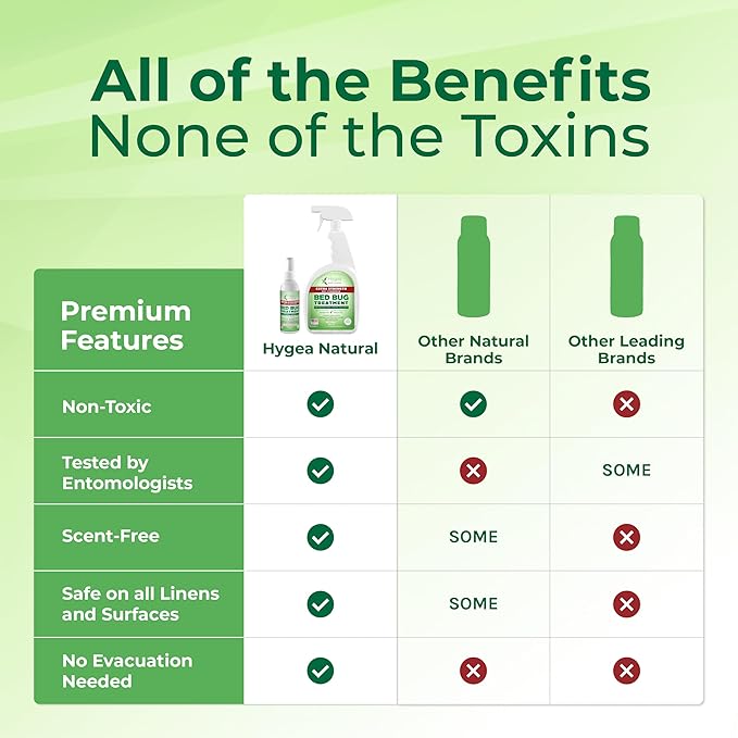 - Odorless & stain-free: Hygea Natural's unique formula can be used on any water-friendly surface including upholstery, mattresses, bed linens, clothing, floors, walls, etc. Spray a light mist of the portable bed bug spray. It won’t leave a residue.