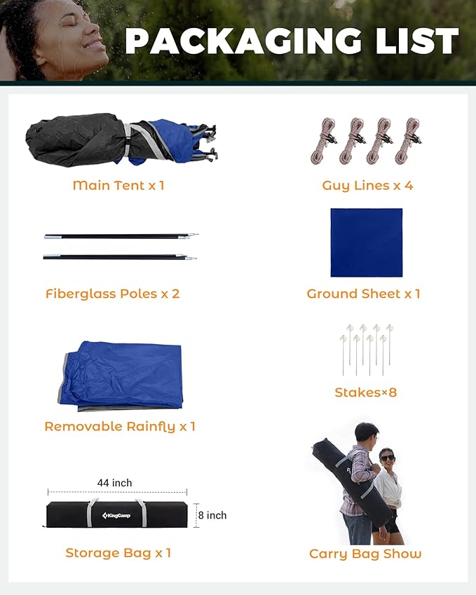 - Included Components : guy lines * 4, stakes * 10, storge bag * 1, main tent * 1, rainfl * 1, ground sheet * 1